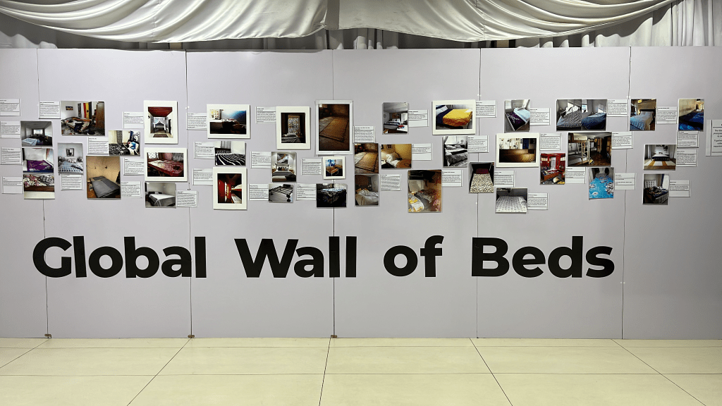 - Participatory Activities: including a recording booth for guests’ reflections, writing surfaces where visitors share words they associate with their beds, visual presentations of recordings, an audio loop and thematic workshops.